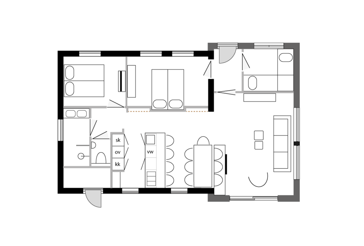 Deze moderne, vrijstaande vakantievilla is geschikt voor maximaal 6 personen. Met een ruime living met grote open keuken met kookeiland heb je voldoende ruimte en luxe om heerlijk te genieten van je vakantie. De gehele woonkamer heeft vloerverwarming en in het zitgedeelte staat een smart-tv. In de luxe open keuken kun je een heerlijk kopje koffie of thee zetten, de vaatwasser wast voor je af en in de oven maak je de lekkerste ovenschotels. Door de praktische, doordachte indeling heeft het vakantiehuis een ruim karakter maar alles zit wel op de begane grond. Er zijn drie slaapkamers, waarvan 1 slaapkamer met twee enkele bedden (kun je wel tegen elkaar zetten), een slaapkamer met een 2-persoons boxspring en 1 slaapkamer is uitgerust met een cross-over stapelbed, erg leuk voor de kinderen! Ook is er een ruime badkamer met grote inloopdouche en dubbele wastafel. Het toilet is bewust apart naast de badkamer gemaakt.